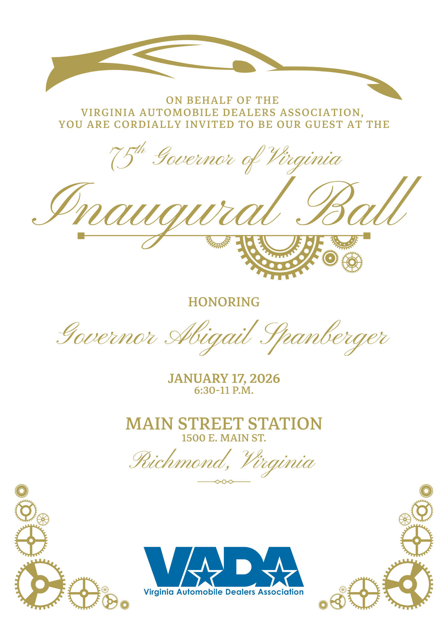 VADA is a longtime participant in gubernatorial inaugurations, providing an opportunity for members to engage at the start of a new administration. This year, VADA’s legislative team attended inaugural events at Main Street Station alongside dealers Tim Pohanka (VADA's Legislative and PAC Chair) and Tanner Hulette, a VADA executive committee member.