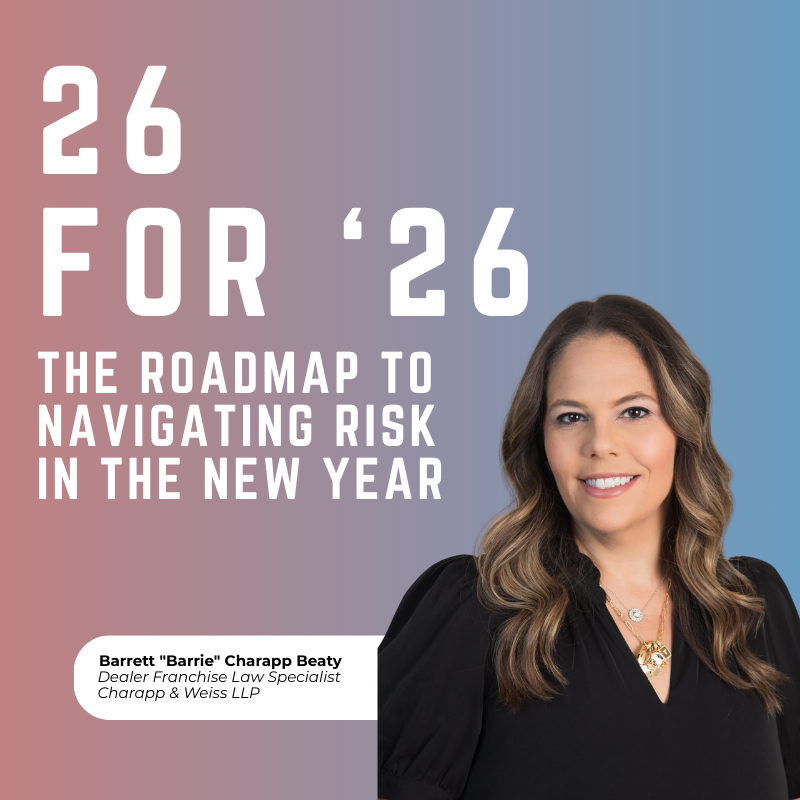 Read ArticleIn an increasingly aggressive landscape, franchisors are challenging dealer rights and pushing for changes to state franchise laws. Explore key areas where dealers can take a stand, including unfair warranty reimbursement, unlawful audits, and unreasonable performance calculations.
